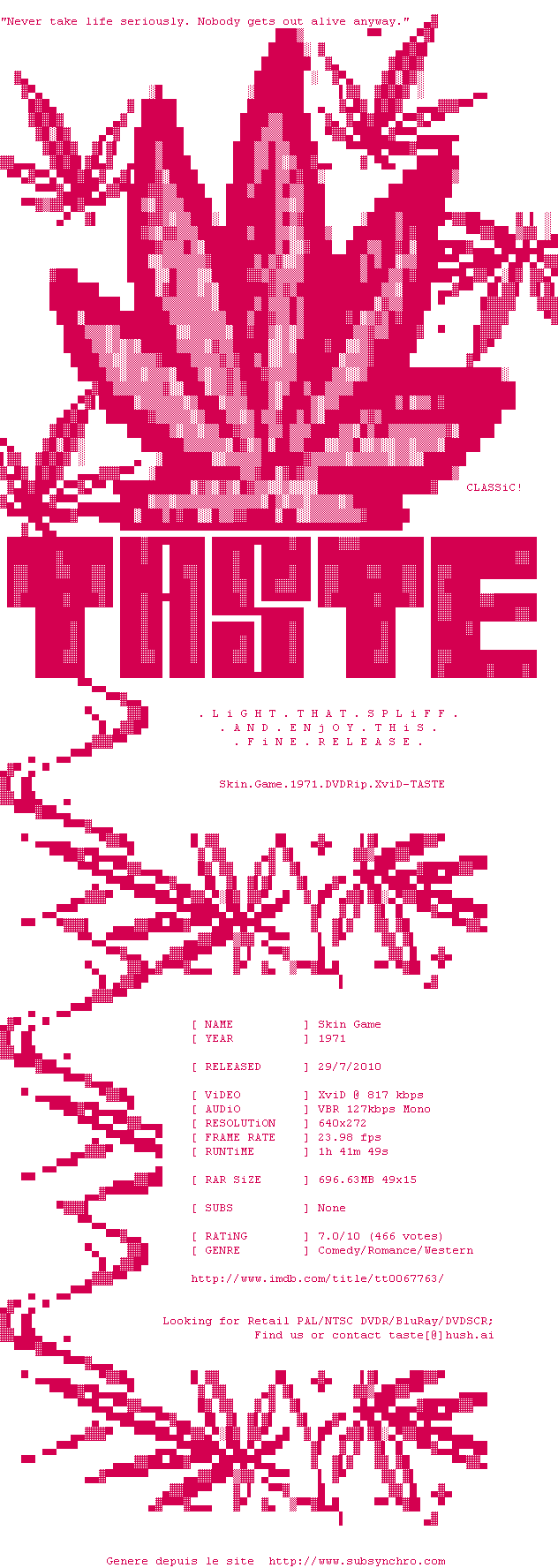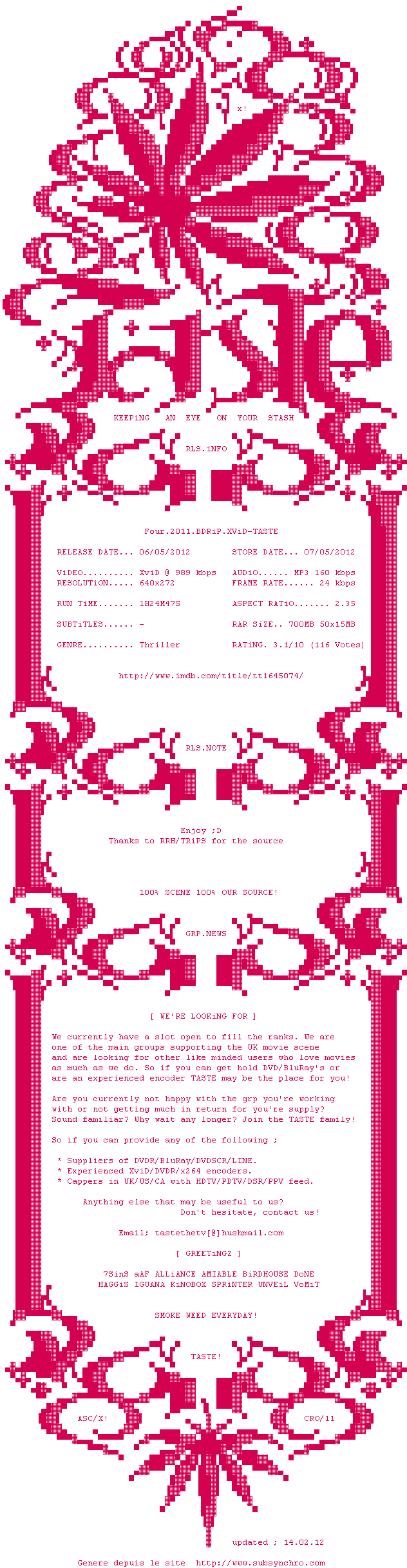 Voir le nfo de la release Pulp.2014.LIMITED.BDRiP.x264-TASTE