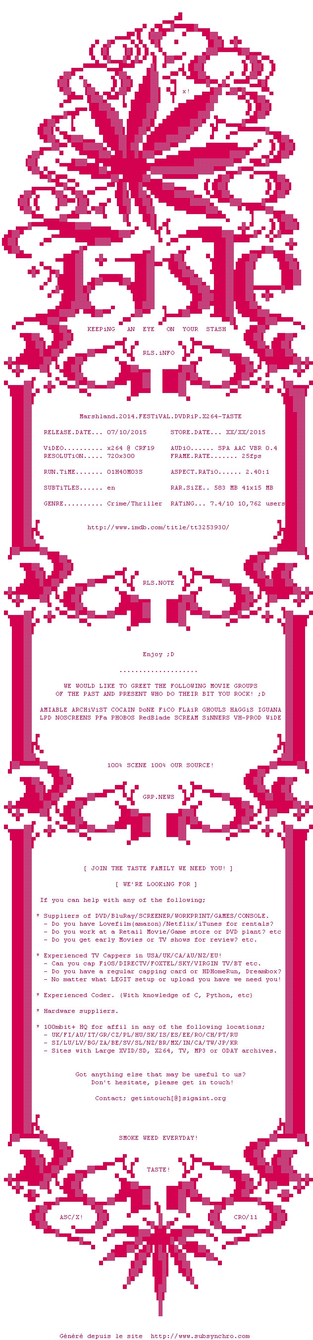 Voir le nfo de la release Howl.2015.FESTiVAL.BDRiP.x264-TASTE