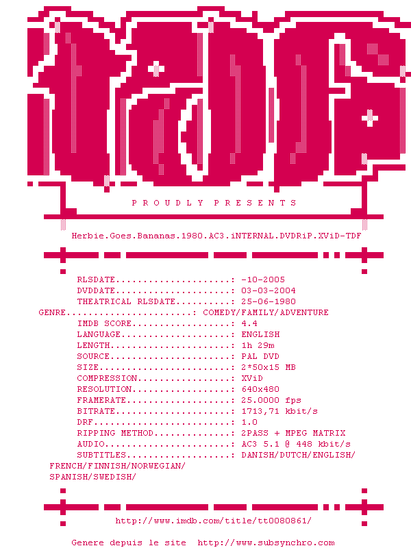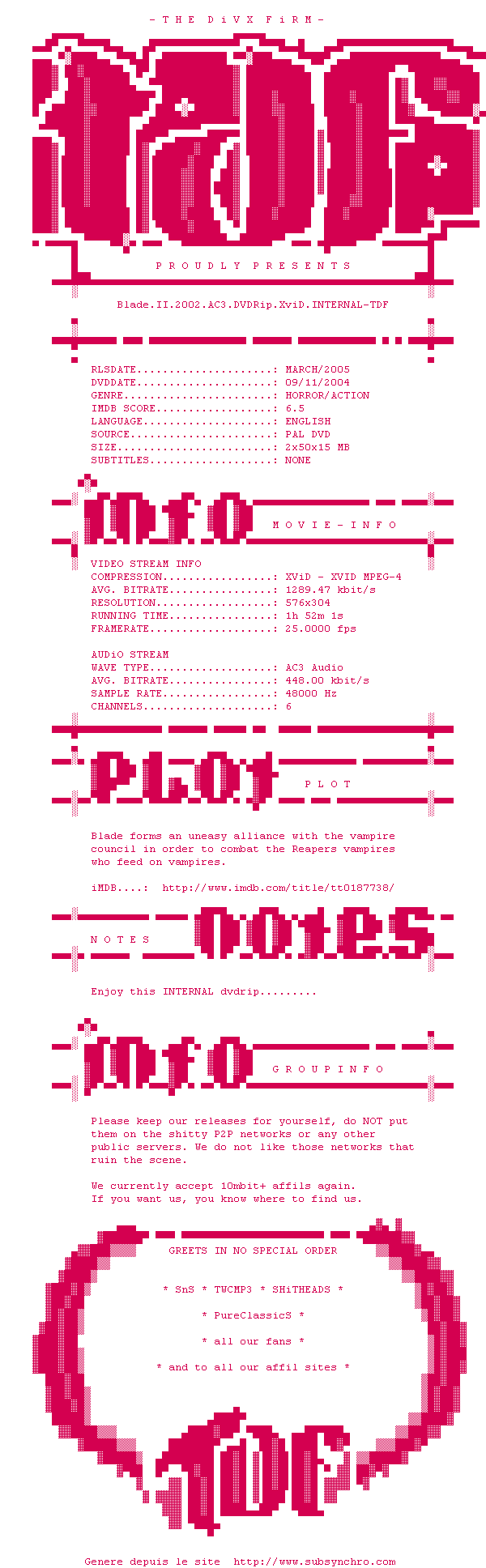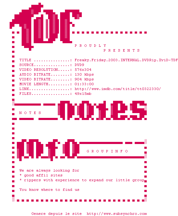 Voir le nfo de la release Big.Daddy.1999.DVDRip.XViD.INTERNAL-TDF