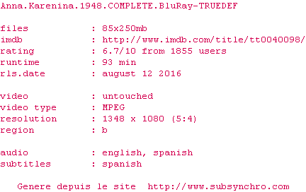 Voir le nfo de la release Anna.Karenina.1948.COMPLETE.BluRay-TRUEDEF
