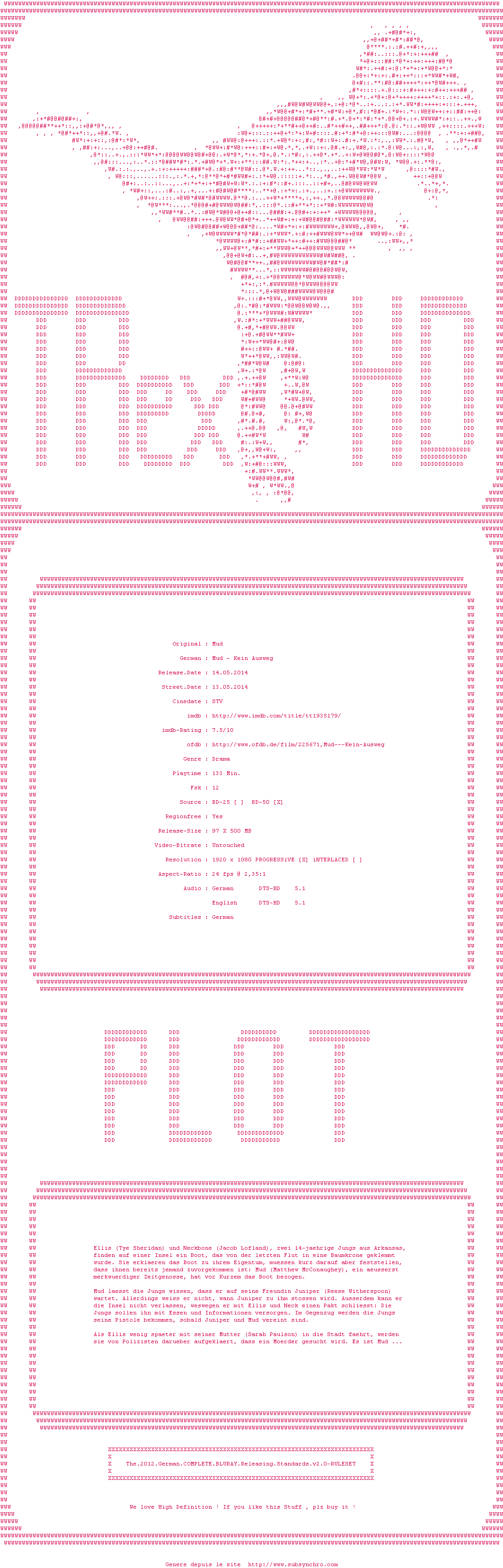 Voir le nfo de la release Mud.2012.DUAL.COMPLETE.BLURAY-TRexHD