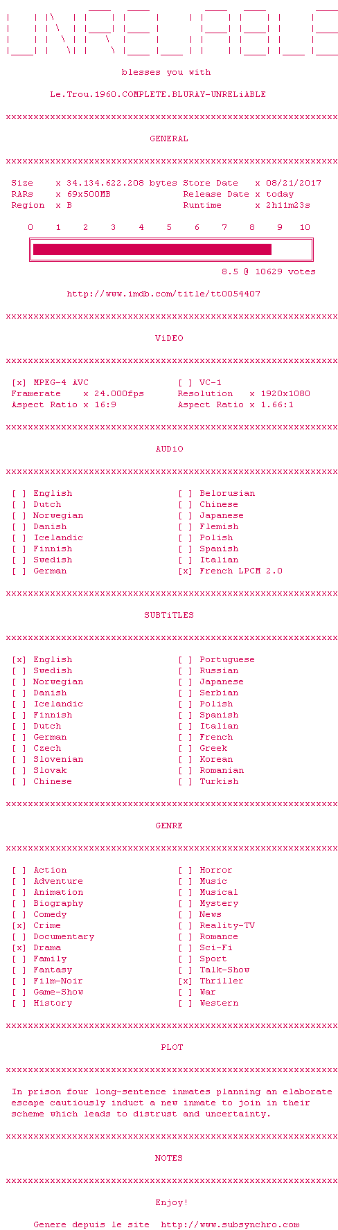 Voir le nfo de la release Le.Silence.De.La.Mer.1949.COMPLETE.BLURAY-UNRELiABLE