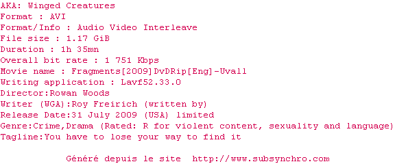 Voir le nfo de la release Fragments.2009.DVDRip-Uvall