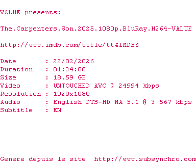 Voir le nfo de la release The.Lorax.2012.3D.1080p.BluRay.x264-VALUE