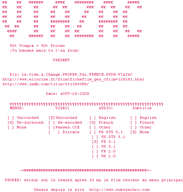 Voir le nfo de la release Cineman.README.PROPER.PAL.FRENCH.DVDR-VIAZAC