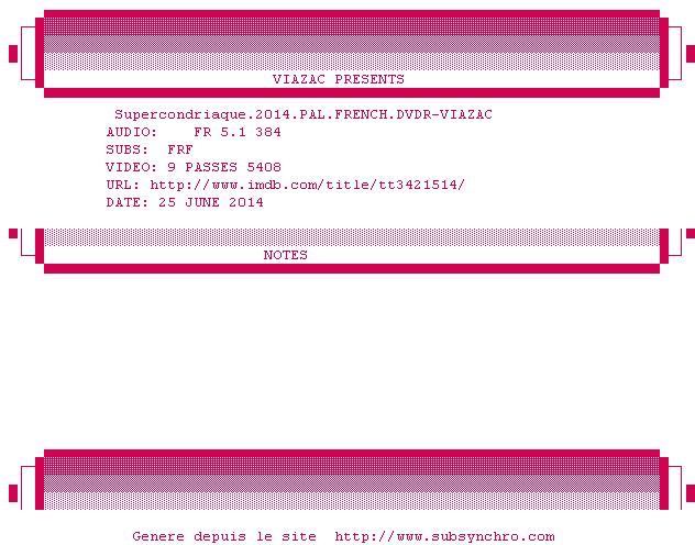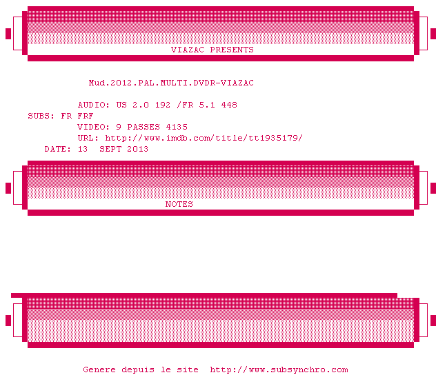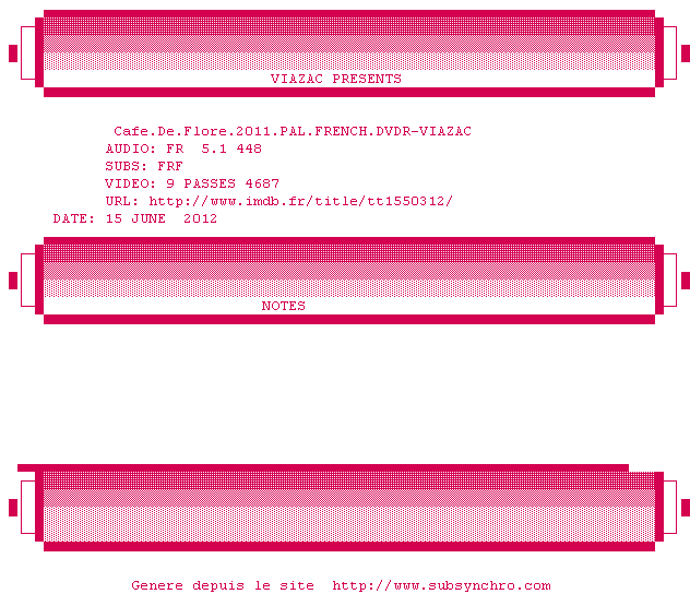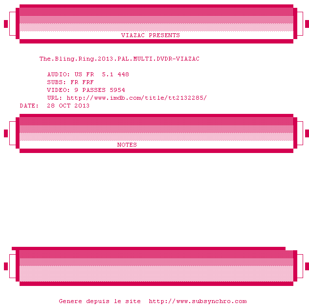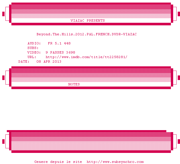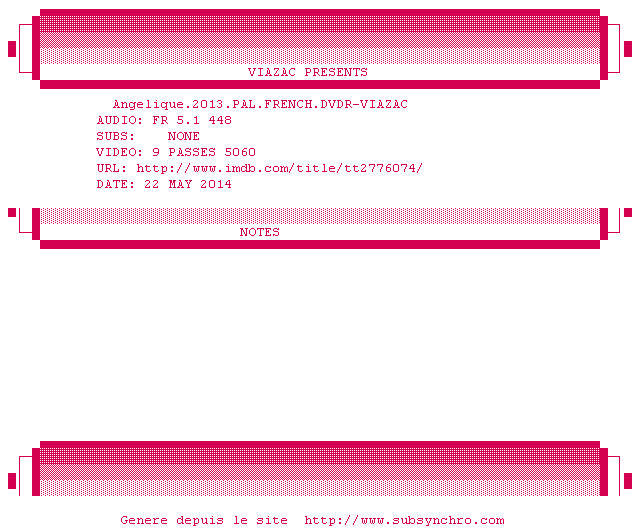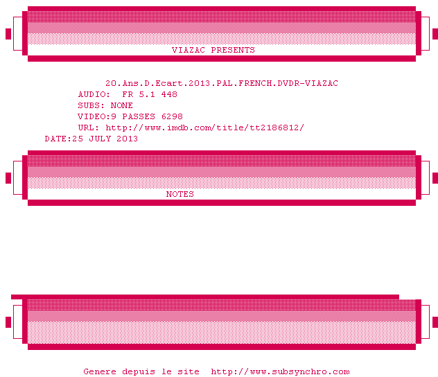 Voir le nfo de la release Ne.Quelque.Part.2013.PAL.FRENCH.DVDR-VIAZAC