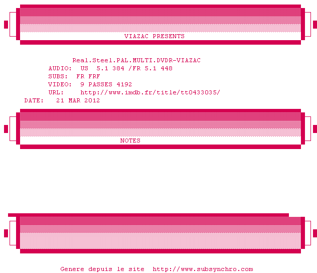 Voir le nfo de la release Real.Steel.PAL.MULTI.DVDR-VIAZAC