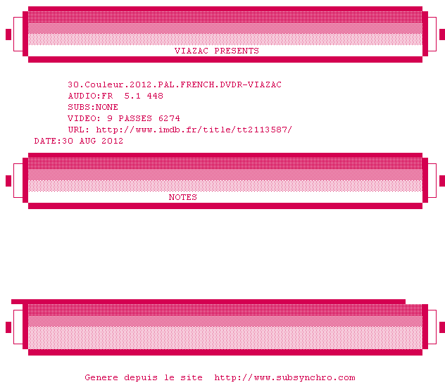 Voir le nfo de la release 30.Couleur.2012.PAL.FRENCH.DVDR-VIAZAC