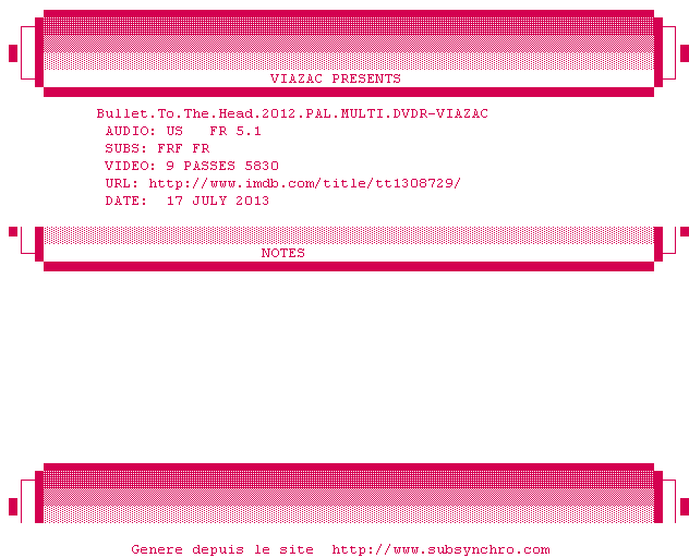 Voir le nfo de la release Les.7.Jours.Du.Talion.PAL.FRENCH.DVDR-VIAZAC