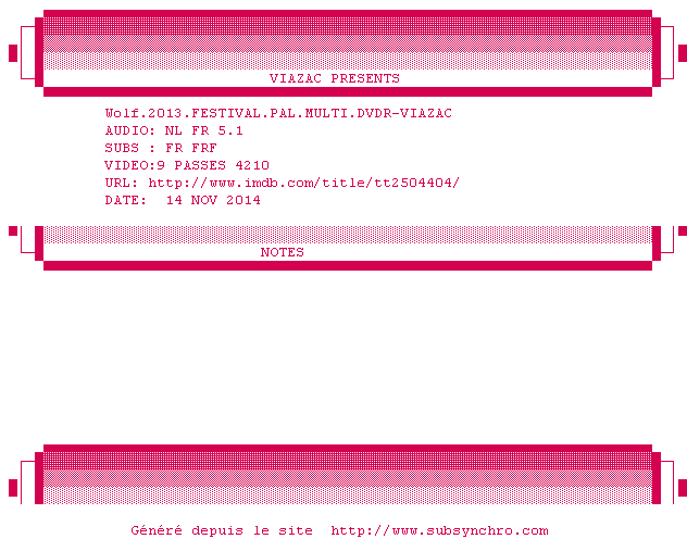 Voir le nfo de la release Wolf.2013.FESTIVAL.PAL.MULTI.DVDR-VIAZAC