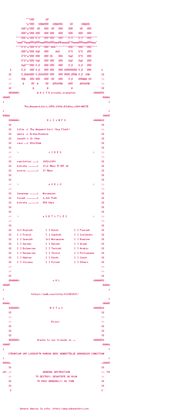 Voir le nfo de la release The.Wayward.Girl.1959.1080p.BluRay.x264-WASTE