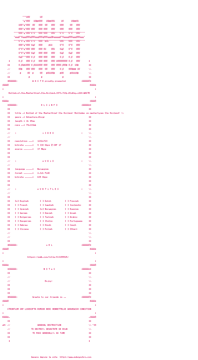 Voir le nfo de la release Ballad.Of.The.Masterthief.Ole.Hoiland.1970.1080p.BluRay.x264-WASTE