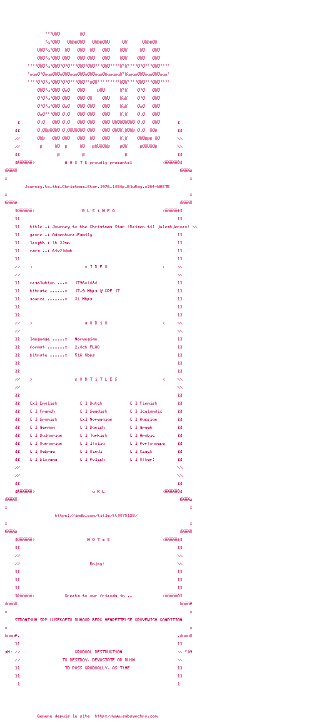Voir le nfo de la release Journey.To.The.Christmas.Star.1976.1080p.BluRay.x264-WASTE