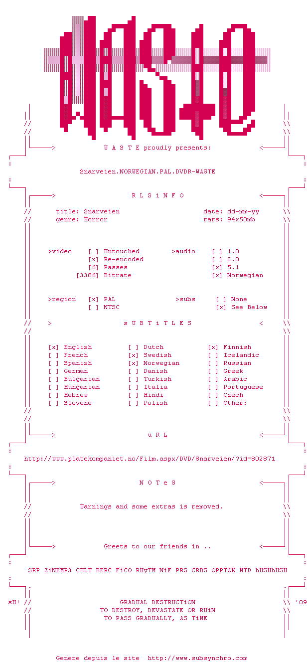 Voir le nfo de la release Bolgen.2015.NORWEGIAN.1080p.BluRay.x264-WASTE
