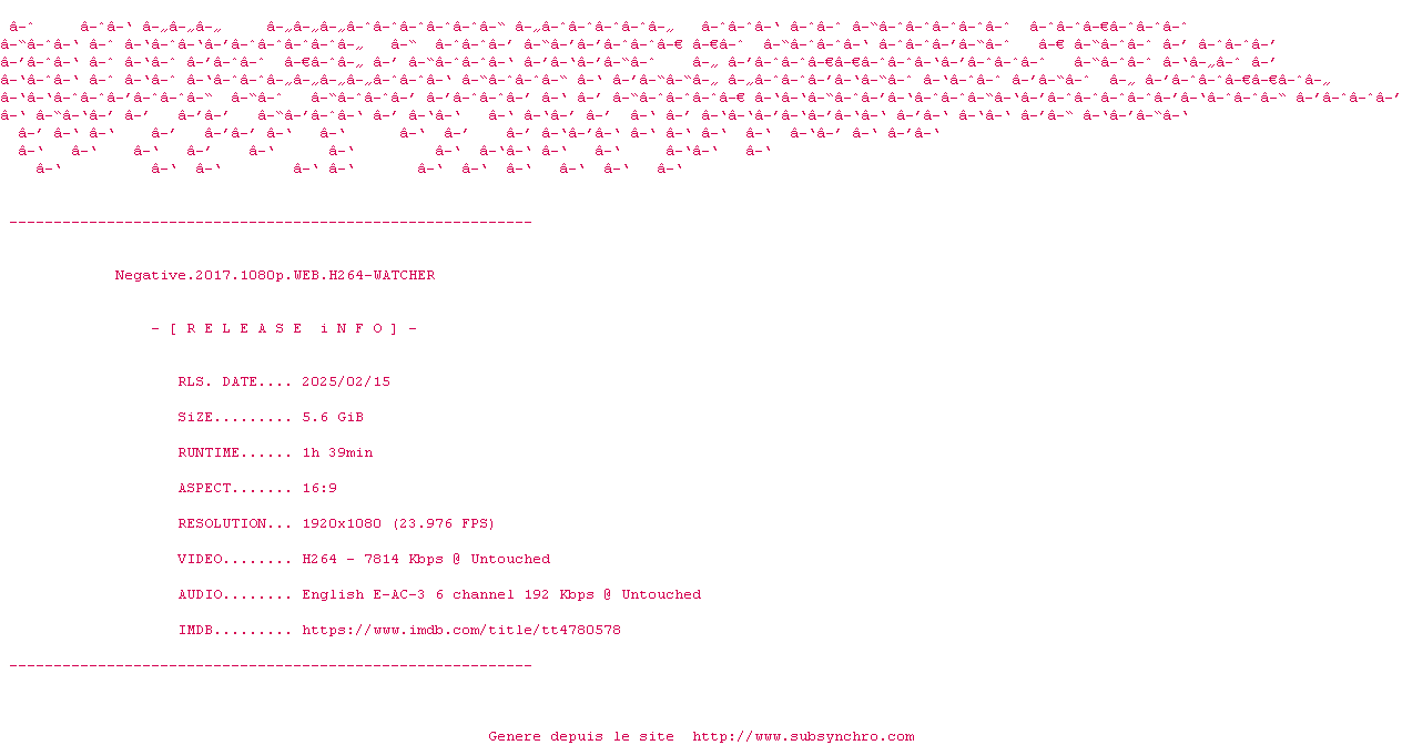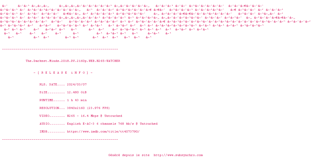 Voir le nfo de la release The.Darkest.Minds.2018.DV.2160p.WEB.H265-WATCHER