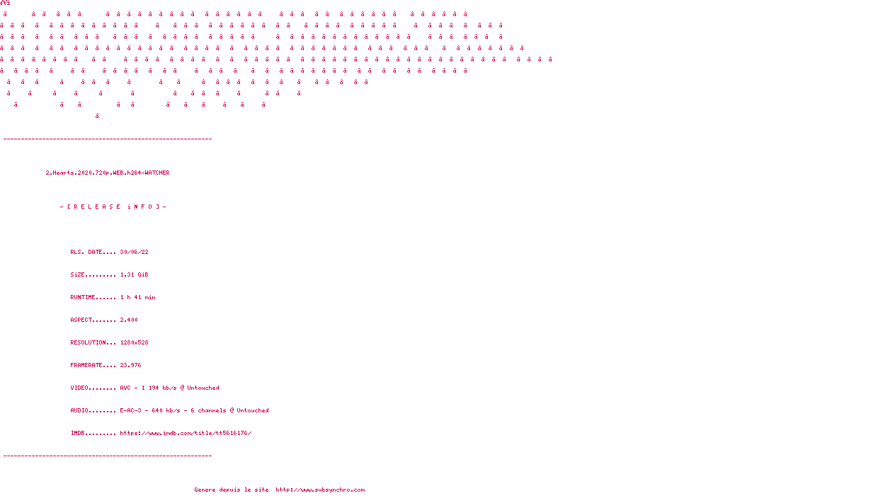 Voir le nfo de la release 2.Hearts.2020.1080p.WEB.H264-WATCHER