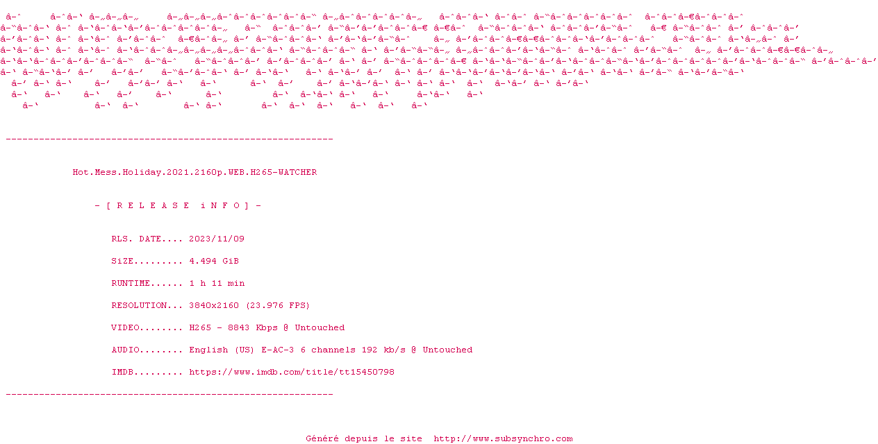 Voir le nfo de la release Hot.Mess.Holiday.2021.2160p.WEB.H265-WATCHER