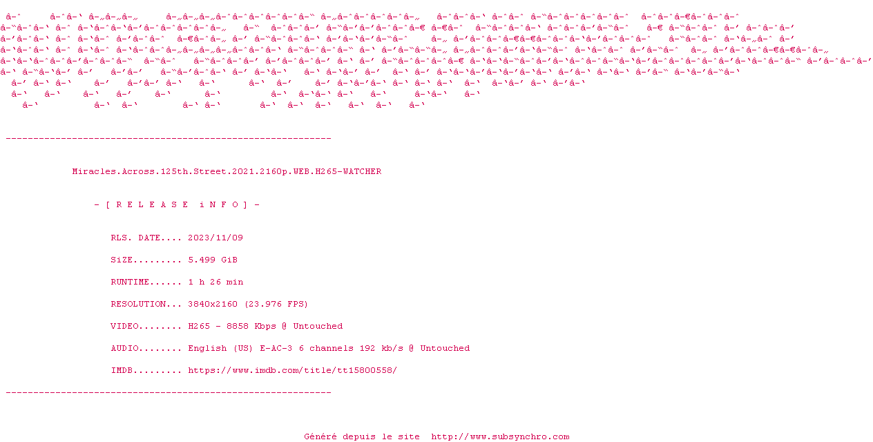 Voir le nfo de la release Miracles.Across.125th.Street.2021.2160p.WEB.H265-WATCHER