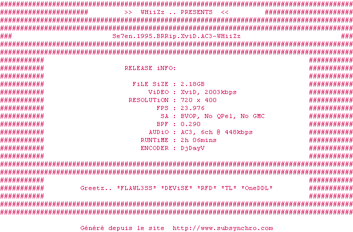 Voir le nfo de la release Se7en.1995.BRRip.XviD.AC3-WHiiZz