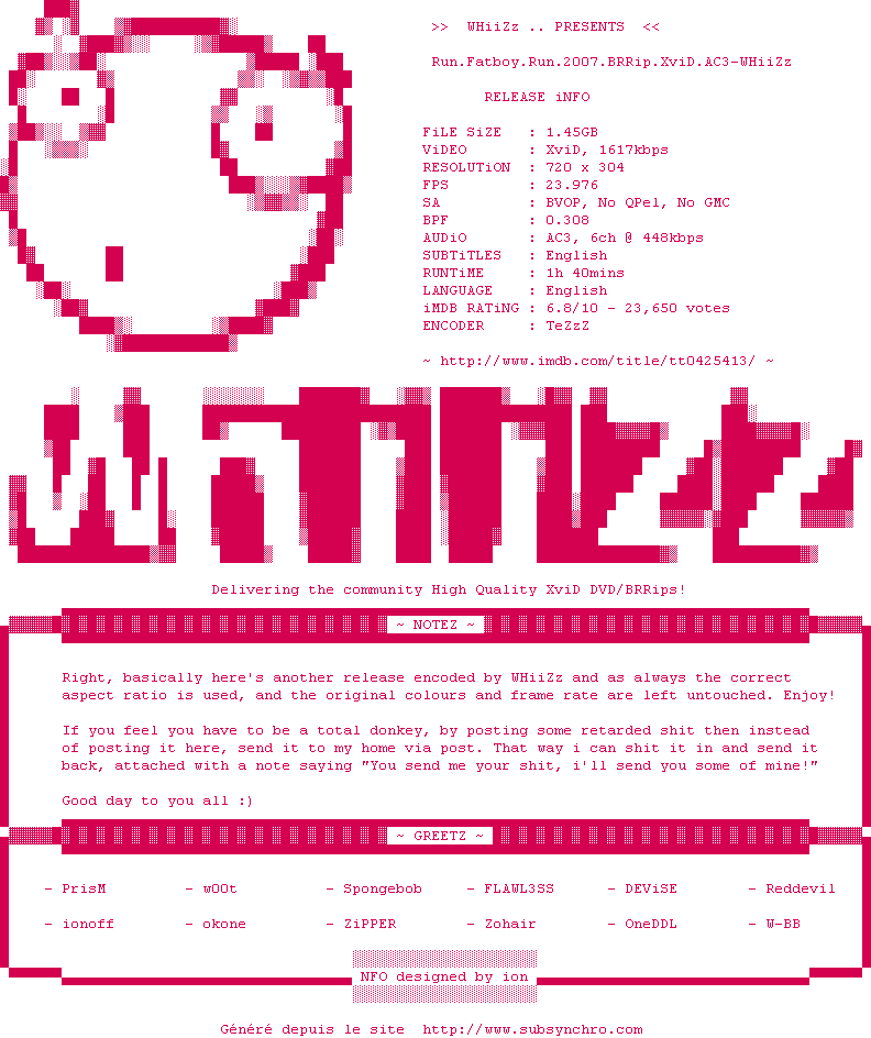 Voir le nfo de la release Run.Fatboy.Run.2007.BRRip.XviD.AC3-WHiiZz