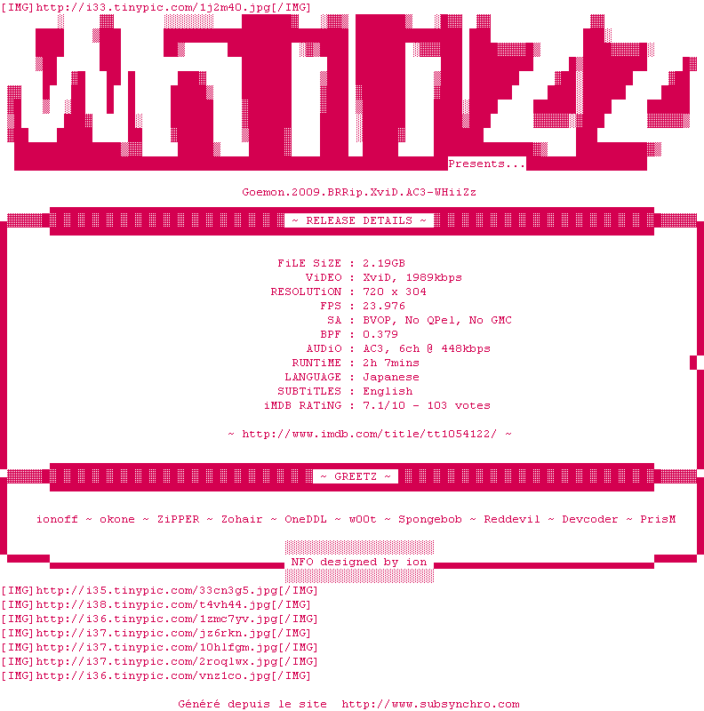 Voir le nfo de la release Goemon.2009.BRRip.XviD.AC3-WHiiZz