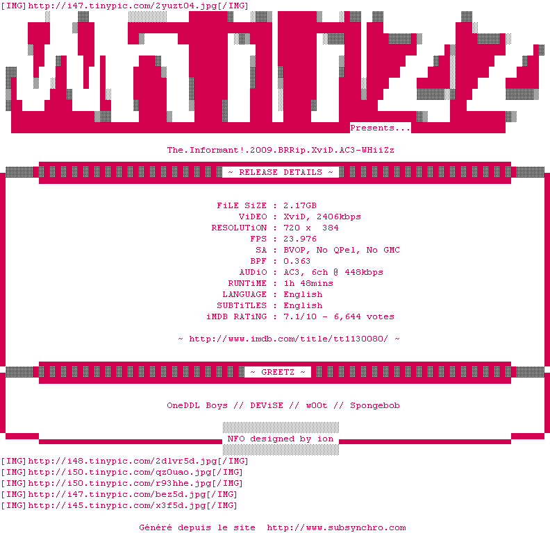 Voir le nfo de la release The.Informant.2009.BRRip.XviD.AC3-WHiiZz
