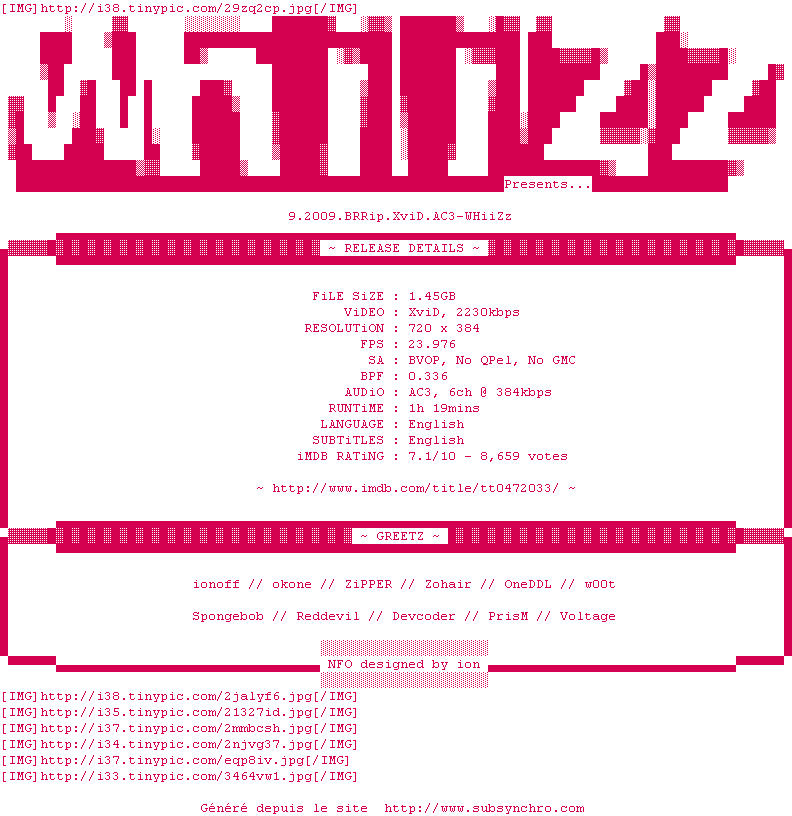 Voir le nfo de la release 9.2009.BRRip.XviD.AC3-WHiiZz