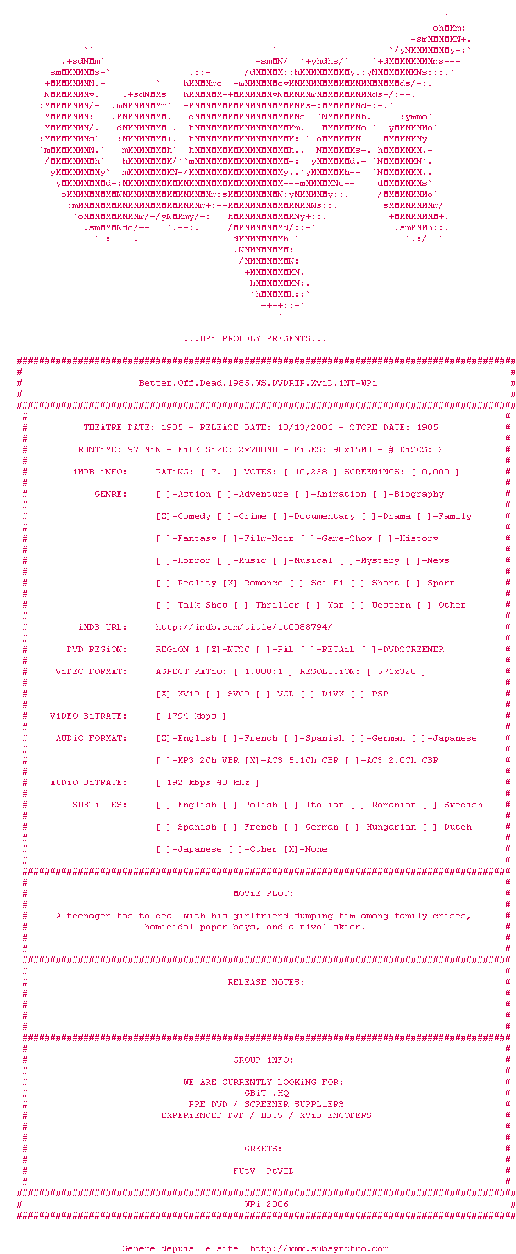 Voir le nfo de la release Alpha.Dog.2006.720p.BluRay.x264.iNT-WPi