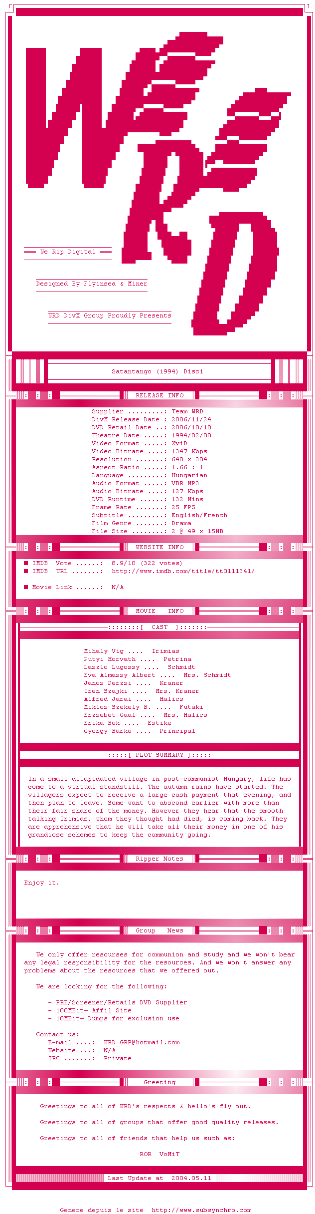 Voir le nfo de la release Install.2004.PROPER.DVDRip.XviD-WRD