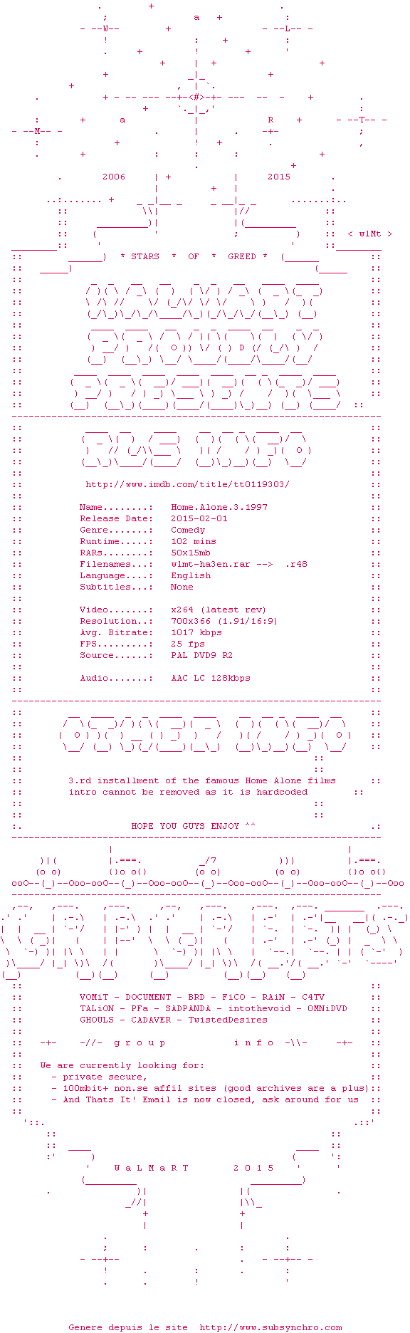 Voir le nfo de la release Daffy.Ducks.Quackbusters.1988.iNTERNAL.BDRip.x264-WaLMaRT