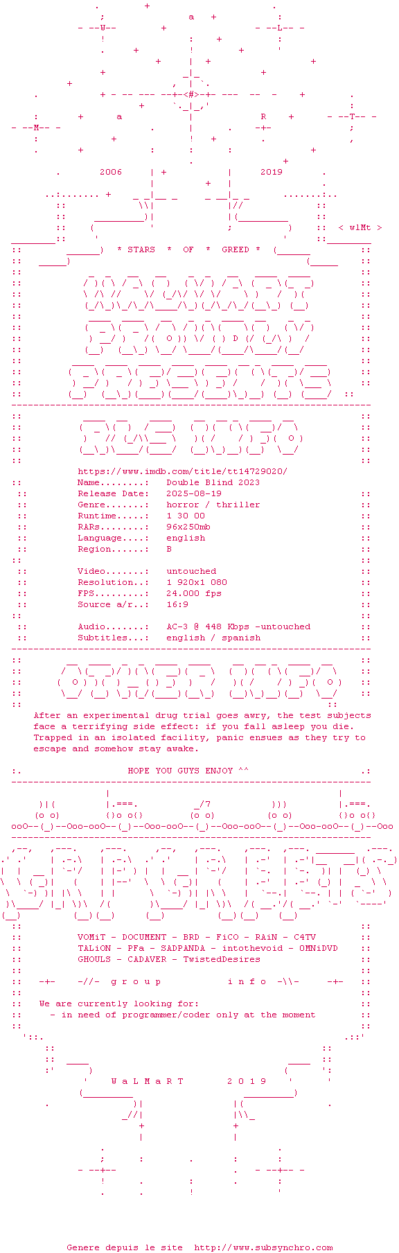 Voir le nfo de la release Double.Blind.2023.COMPLETE.BluRay-WaLMaRT
