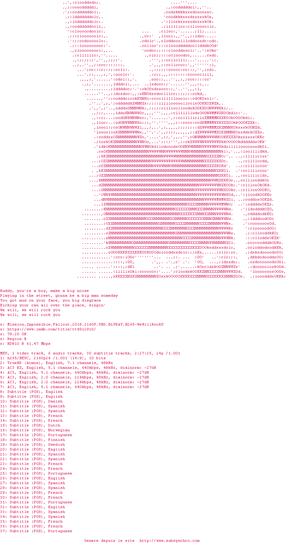 Voir le nfo de la release Mamma.Mia.Here.We.Go.Again.2018.iNTERNAL.MULTI.COMPLETE.UHD.BLURAY-WeWillRockU