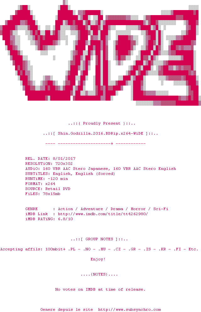 Voir le nfo de la release The.Hero.Of.Color.City.2014.BDRip.x264-WiDE