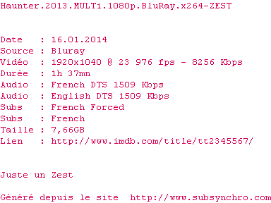 Voir le nfo de la release Haunter.2013.MULTi.1080p.BluRay.x264-ZEST