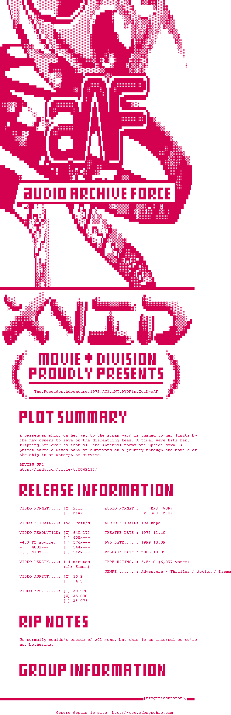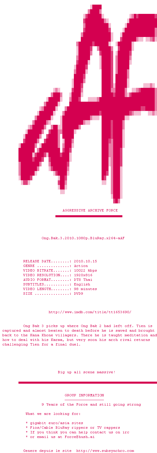 Voir le nfo de la release Cypher.2002.PROPER.1080p.BluRay.x264-aAF