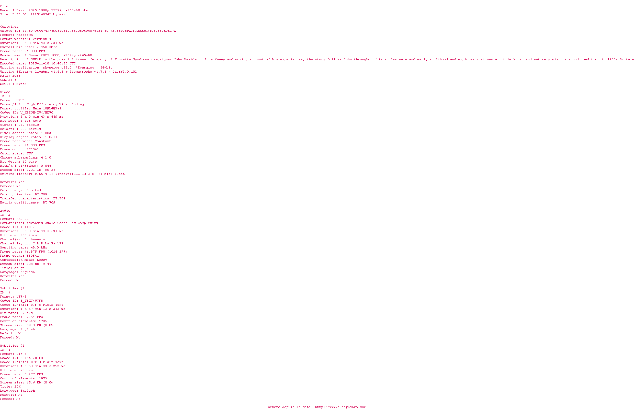 Voir le nfo de la release I.Swear.2025.1080p.WEBRip.x265-DH
