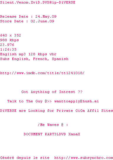 Voir le nfo de la release Silent.Venom.XviD.DVDRip-DiVERSE
