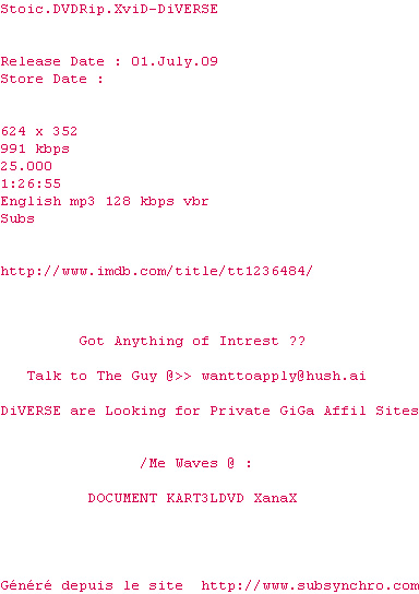 Voir le nfo de la release Stoic.DVDRip.XviD-DiVERSE