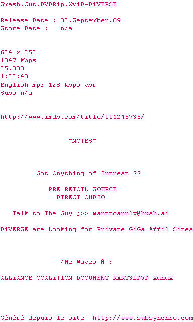 Voir le nfo de la release Smash.Cut.DVDRip.XviD-DiVERSE