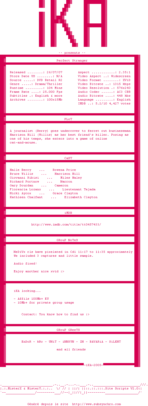 Voir le nfo de la release Captivity.2007.DVDRiP.XViD-iKA