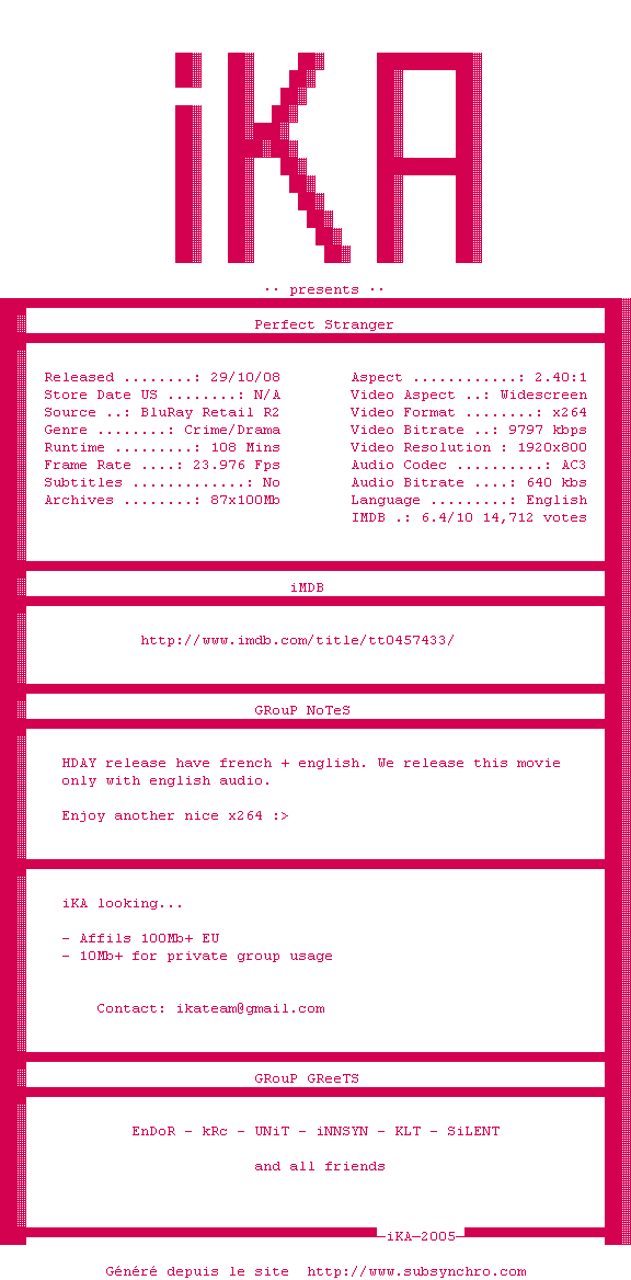 Voir le nfo de la release Cry.Wolf.2005.1080p.BluRay.x264-iKA