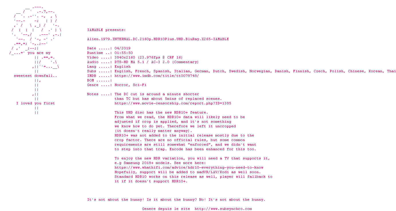 Voir le nfo de la release Pitch.Black.2000.DC.2160p.UHD.BluRay.x265-IAMABLE