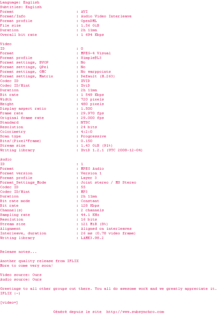 Voir le nfo de la release I.Am.Number.Four.2011.PPVRiP-IFLIX