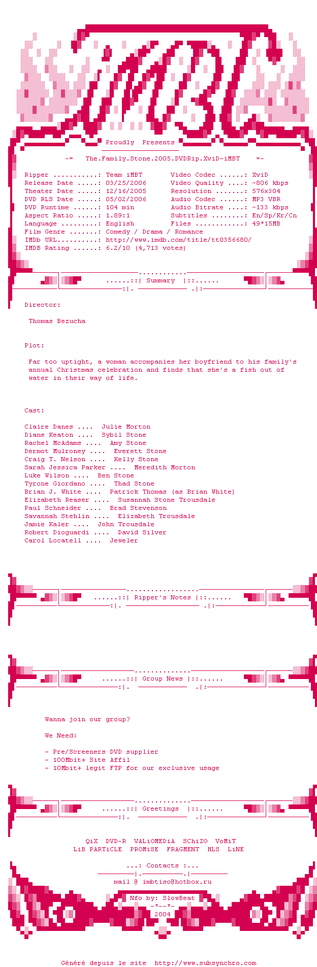 Voir le nfo de la release The.Family.Stone.2005.DVDRip.XviD-iMBT