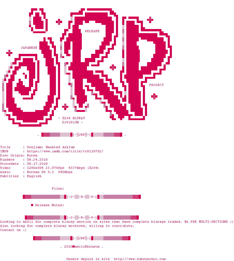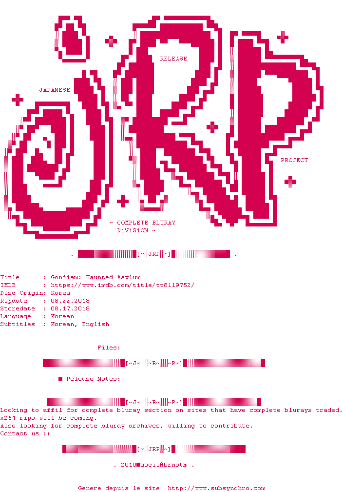 Voir le nfo de la release Gonjiam.Haunted.Asylum.2018.1080p.BluRay.x264-JRP