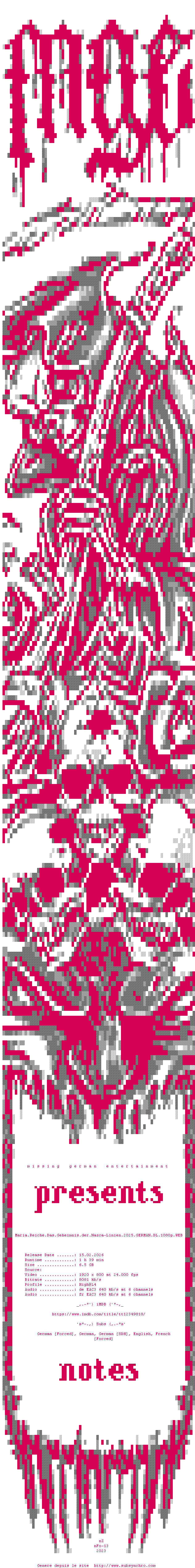 Voir le nfo de la release Maria.Reiche.Das.Geheimnis.Der.Nazca-Linien.2025.GERMAN.DL.720p.WEB.H264-MGE