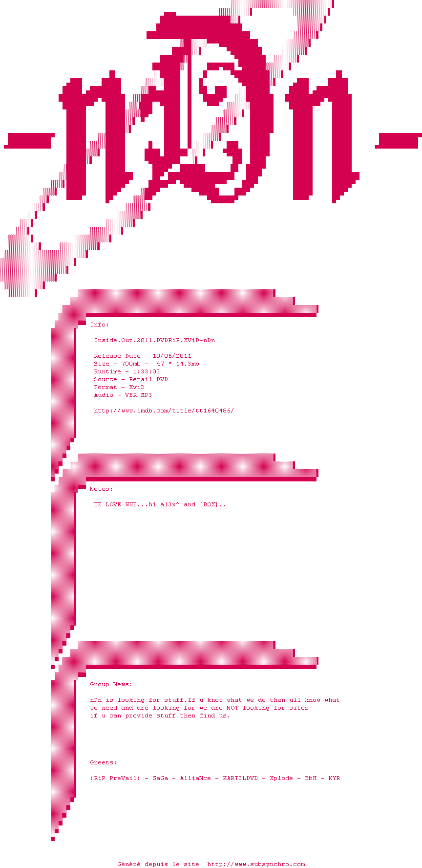 Voir le nfo de la release Inside.Out.2011.DVDRiP.XViD-nDn