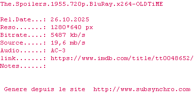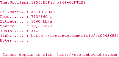 Voir le nfo de la release The.Spoilers.1955.1080p.BluRay.x264-OLDTiME