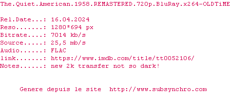 Voir le nfo de la release The.Quiet.American.1958.REMASTERED.720p.BluRay.x264-OLDTiME