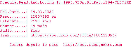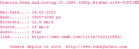 Voir le nfo de la release Dracula.Dead.And.Loving.It.1995.1080p.BluRay.x264-OLDTiME